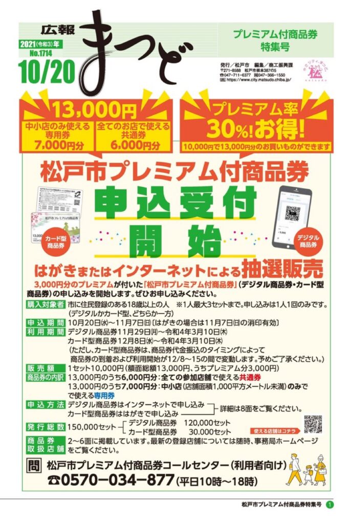 この松戸市でも、10月20日(水)から、「松戸市プレミアム付商品券」の申込受付が開始しました。