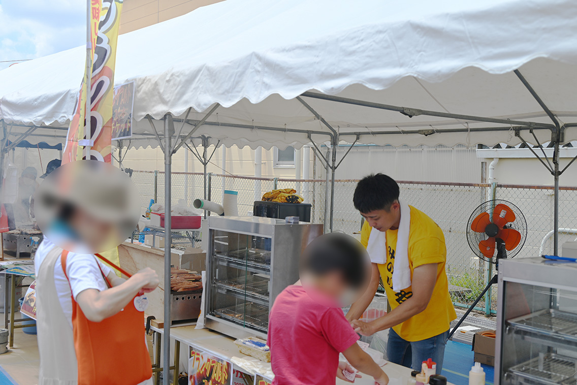 食べ物などに関しても、プロの手を借りずにみんな弊社社員がご用意しているため、暑い中、少しお客様をお待たせしてしまうかもしれませんが、くれぐれも熱中症に気を付けながら、お待ちいただけると助かります。