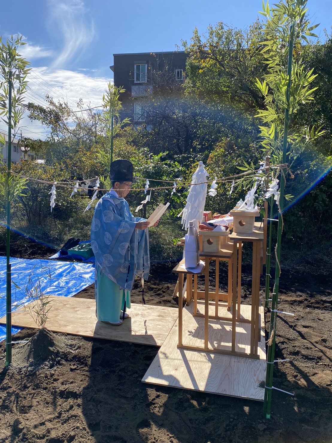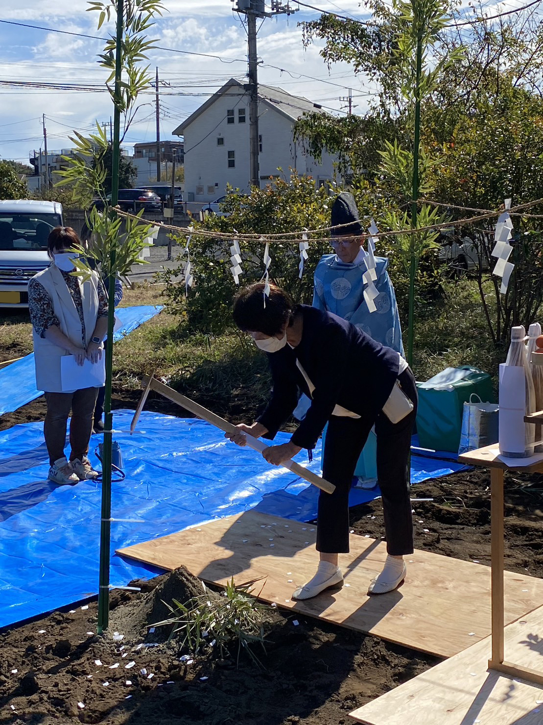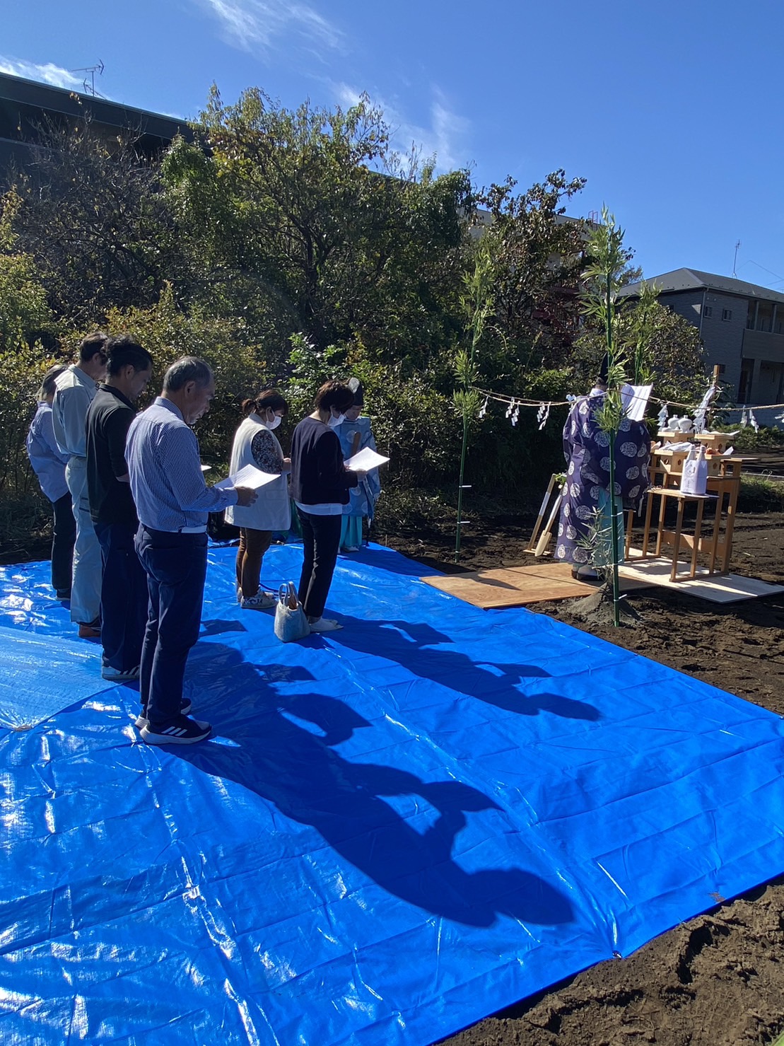 地鎮祭とは、簡単にいうと、家(建物)を建て始める前に神主などを呼んで、工事の安全を願う儀式になります。